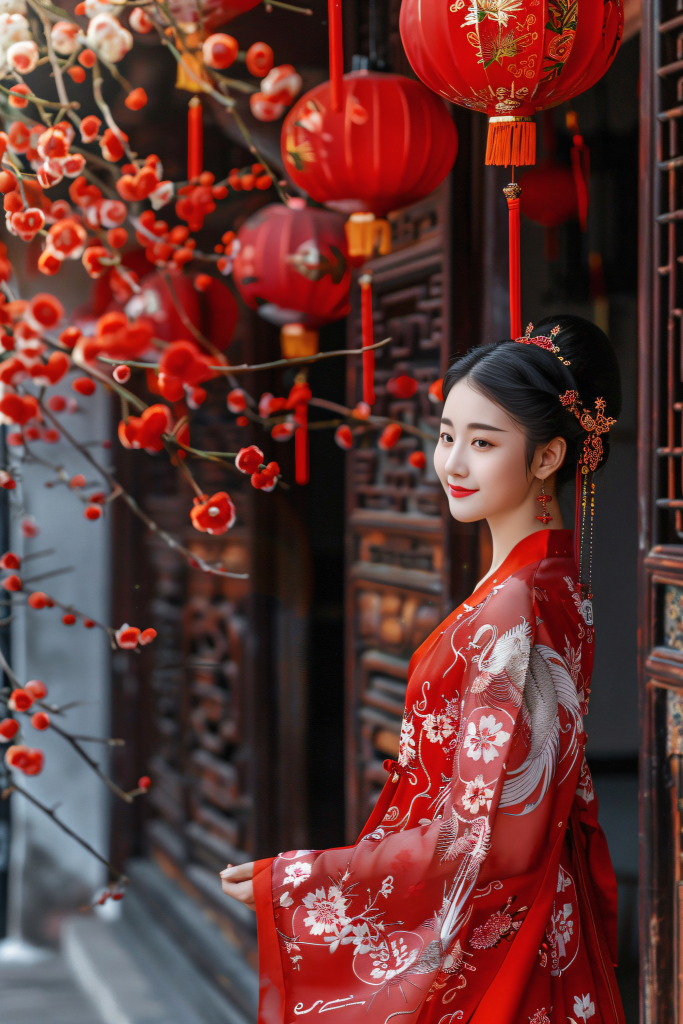 - 发饰:步摇、发簪、绒花,增添古典韵味。